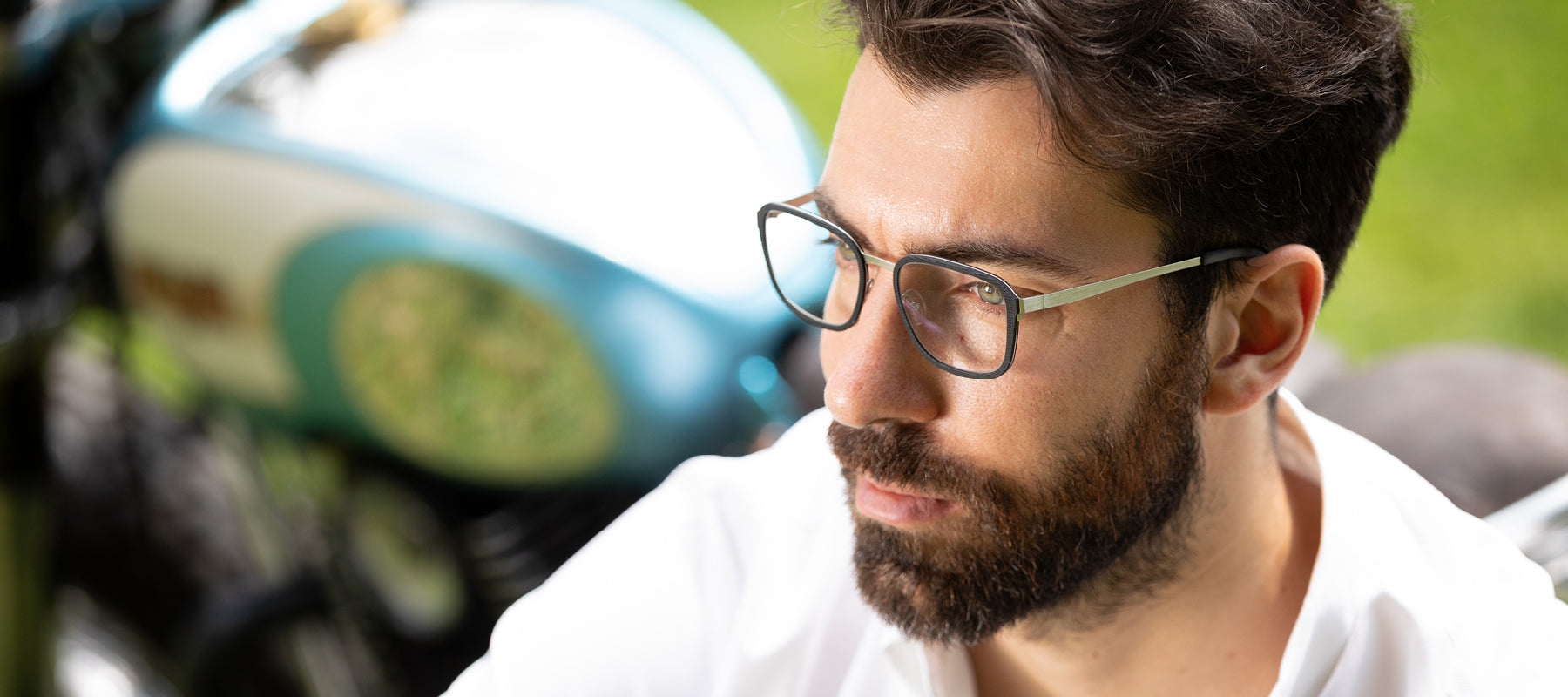 Our DERAPAGE line was sparked off by an entrepreneurial success in the automobile world to which it pays tribute. DERAPAGE describes a way of negotiating a bend in a car race: a mixture of driver control and carperformance pushed to the limit. DERAPAGE glasses are the result of sophisticated engineering even before design allure. Over the years the collection has given a technologically subtle gloss on the novelties of eyewear, and taken on board some quite unusual models. The materials used areoften first-ever choices.